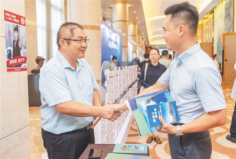参会嘉宾在保亭展位向工作人员了解政策。海南日报全媒体记者 袁琛 摄