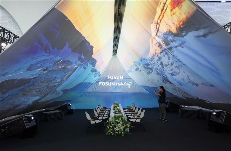 复星旅文展出的“光影织梦,山海无界”沉浸式度假体验空间。特派记者 刘琪成 摄