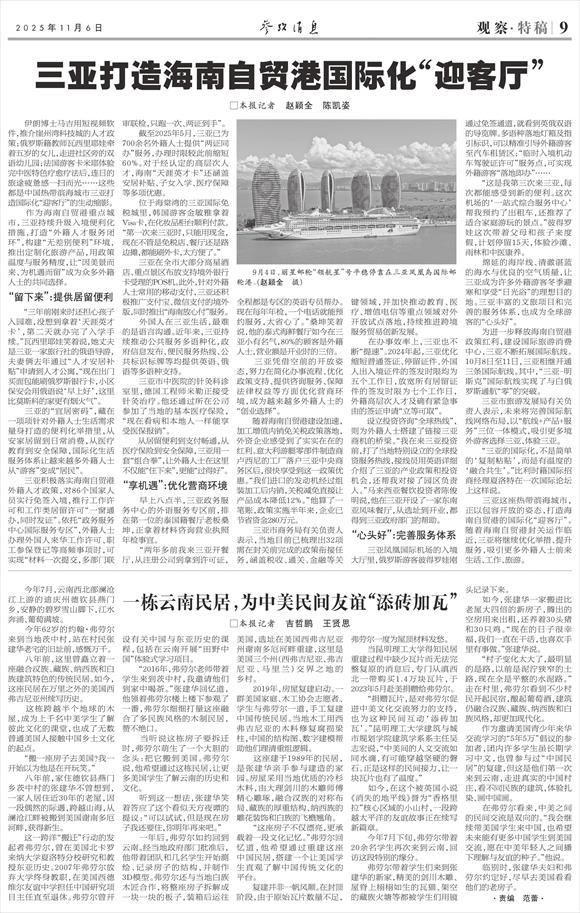 三亚这座热带滨海城市,正以包容开放的姿态,打造海南自贸港的国际化“迎客厅”。随着海南自贸港封关运作临近,三亚将继续优化举措、提升服务,吸引更多外籍人士前来生活、工作、旅游。