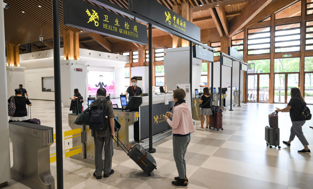 旅客在三亚凤凰国际机场国际航站楼通过海关卫生检疫智能闸机(杨冠宇 摄)
