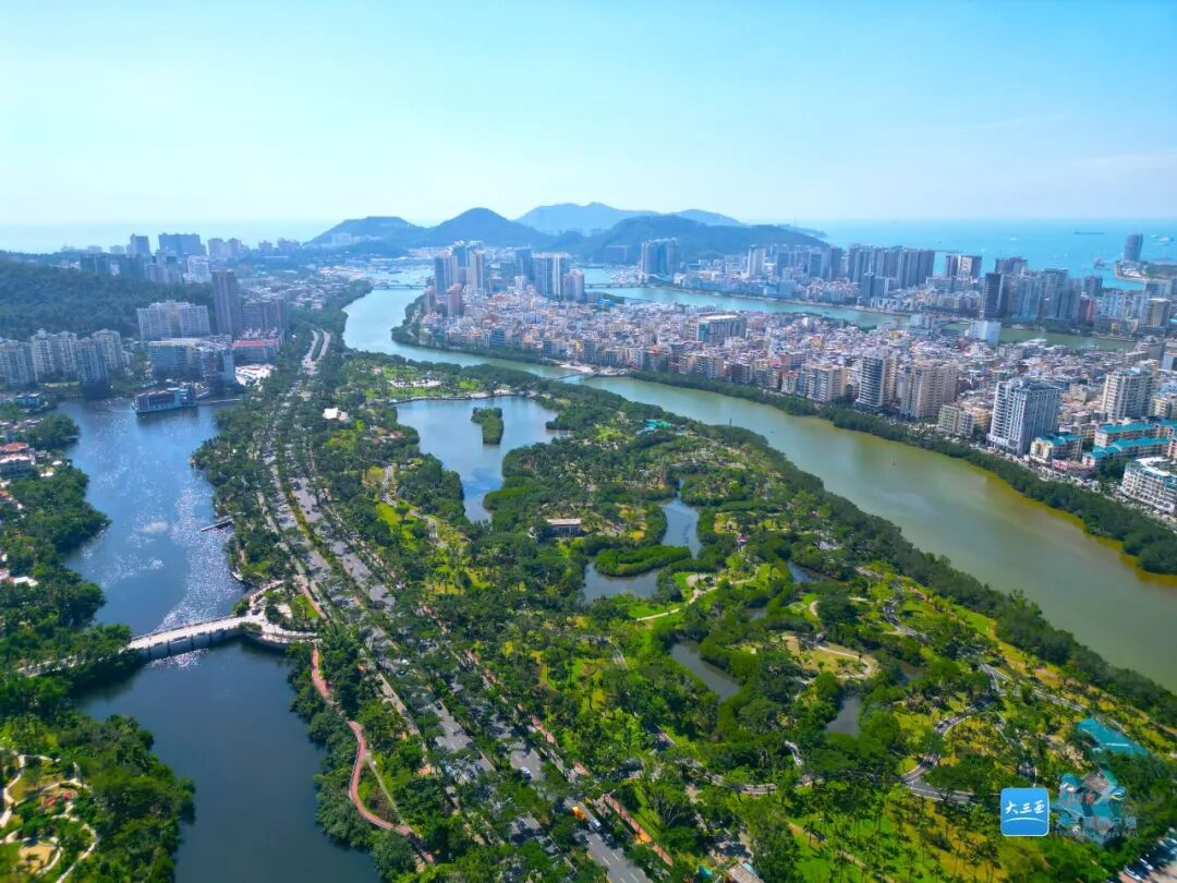 白鹭公园绿树葱茏,三亚河、临春河如同两条绿带将城市环绕。