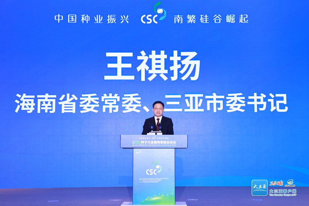 王祺扬代表三亚市委、市政府向出席大会的各位来宾表示热烈欢迎,向长期以来关心支持三亚经济社会发展和“南繁硅谷”建设的各界朋友表示衷心感谢。他指出,2026年是“十五五”开局之年、海南自贸港全岛封关运作后扬帆起航之年,也是种业振兴行动由“五年见成效”迈向“十年实现重大突破”的关键之年。当前,海南自贸港建设迈入了改革开放发展新阶段,封关运作后的政策和开放优势,将为种业创新发展与交流合作带来前所未有的重大机遇。三亚将始终牢记习近平总书记的殷殷嘱托,认真贯彻党的二十届四中全会精神,坚决扛牢助力国家种业振兴使命担当,聚焦国家所需、海南所谋、三亚所能和未来所向,加快推进“南繁硅谷”建设,着力打造世界有影响力的种业科技创新策源地、全国现代种业聚集地和种业国际合作高地,为种业振兴和农业强国建设贡献三亚力量。