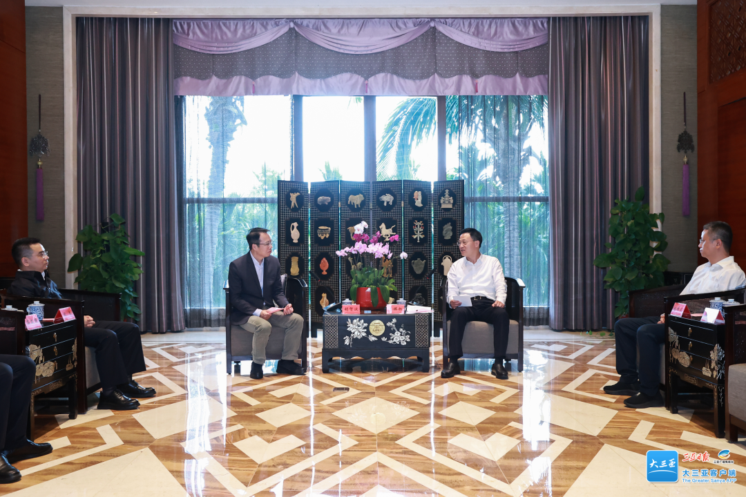 3月31日,海南省委常委、三亚市委书记王祺扬在三亚会见湖南省湘潭市委书记胡贺波一行。双方围绕抢抓海南自由贸易港建设和长株潭一体化发展机遇,健全完善多层次合作机制,充分发挥两地特色优势,在经贸往来、科技创新、文化旅游、人才交流等领域加强联动,促进区域协同、互利共赢,携手打造区域合作典范进行交谈探讨。湖南省人民政府驻海南办事处副主任欧勇,湘潭市领导高友根、赵新文、曾志君、李国大,三亚市领导杨希义、樊木参加会见。