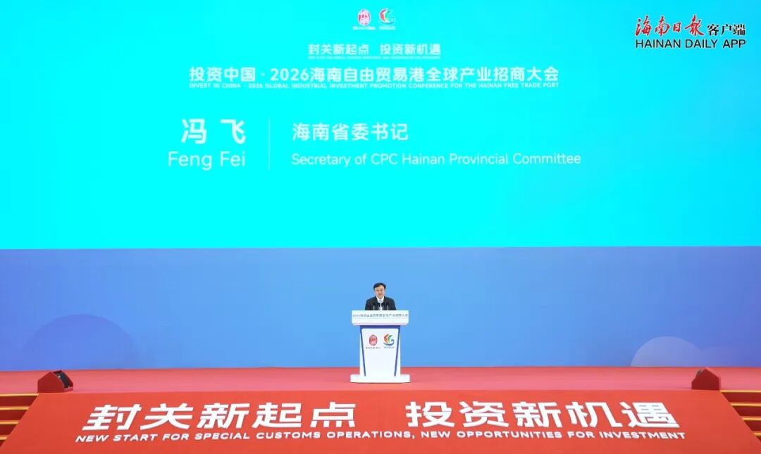 4月14日,由海南省政府与商务部联合主办的投资中国·2026海南自由贸易港全球产业招商大会在海口开幕。省委书记冯飞致辞,省长刘小明主持开幕活动并作海南自由贸易港产业投资机遇推介,商务部副部长盛秋平致辞。